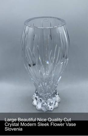 Large Beautiful Nice Quality Cut Crystal Modern Sleek Flower Vase Slovenia