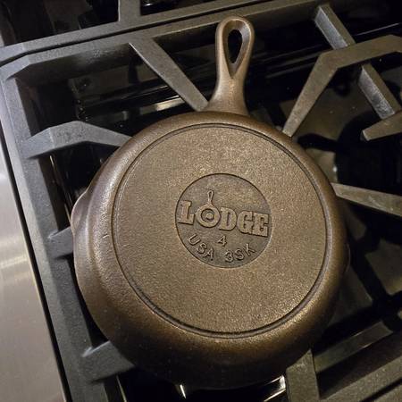 This Lodge 3SK 6-inch Cast Iron Skillet Pan is a classic and durable piece of cookware compatible with electric and gas stoves. With a black cast iron material, this skillet is perfect for cooking a variety of dishes and is an original piece from the Lodge brand.