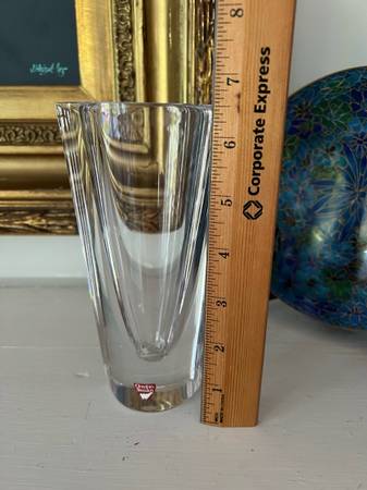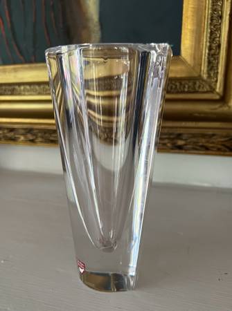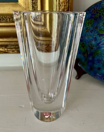 This is a stunning and heavy vintage crystal vase from Orrefors, signed on the bottom. This Swedish Crystal Prism Vase looks to be in perfect condition. Displays wonderfully.