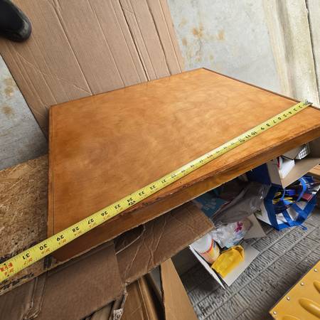 In excellent condition with only a few minor dings and light scratches, barely noticeable. Fabric shows a few nicks where emblems previously were attached. Weighs about 30 lbs, Outer dimensions = 30 x 25 x 5 inches. Inner space = 23 x 18.5 x 3.25 inches. Chair in picture for comparison (chair not included with sale).