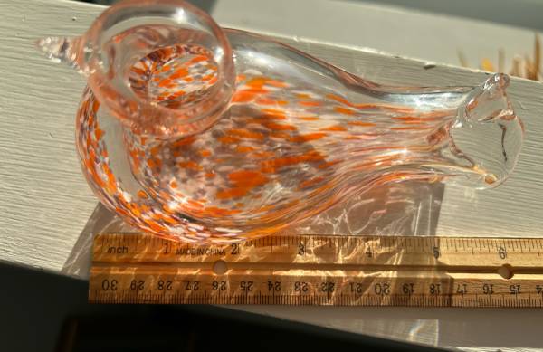 Pretty Art Glass Bird Clear White Orange Spatter 6”’ long -...