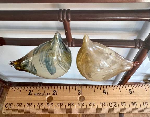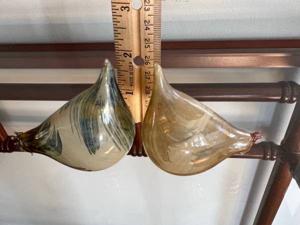Collectible hollow blown glass chicken or rooster figures - both small - sold as a pair. Approx 2.5” long by 2” tall. Google these - they have a following