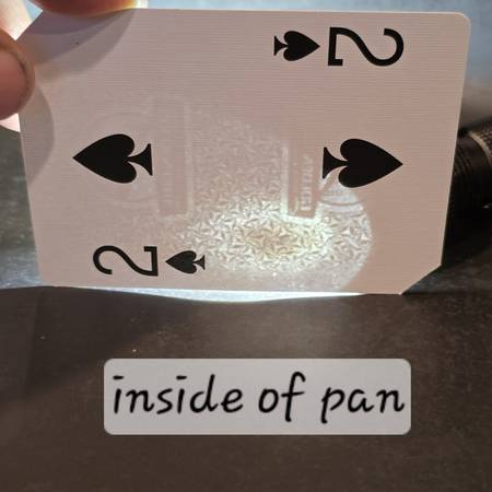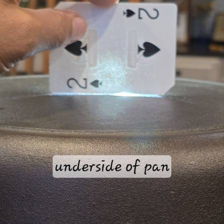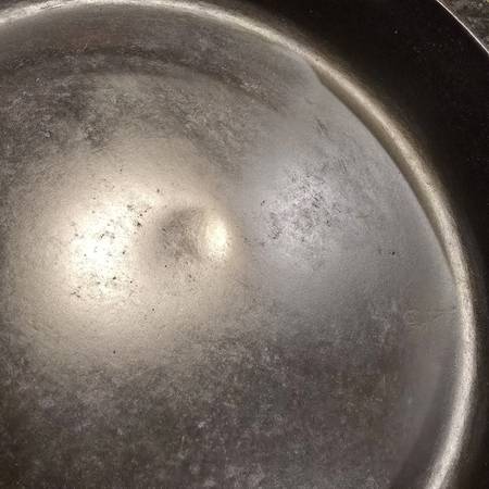 It has a noticeable divot in the center of cooking surface, mild convexity along the underside, mild warp with 1/4-1/3 turn spin, and slight wobble, so i have priced this accordingly.