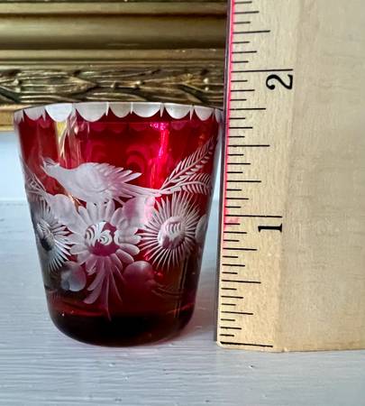 Ruby red etched or flashed shot glass - stunning - household items -...