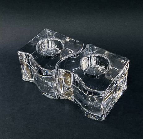 This is a set of Orrefors candle holders design by, Helen Krantz. The series is called PUZZLE because you can lay them as you wish. They look great right next together or standing alone. These candle holders are in solid crystal and heavy weight.