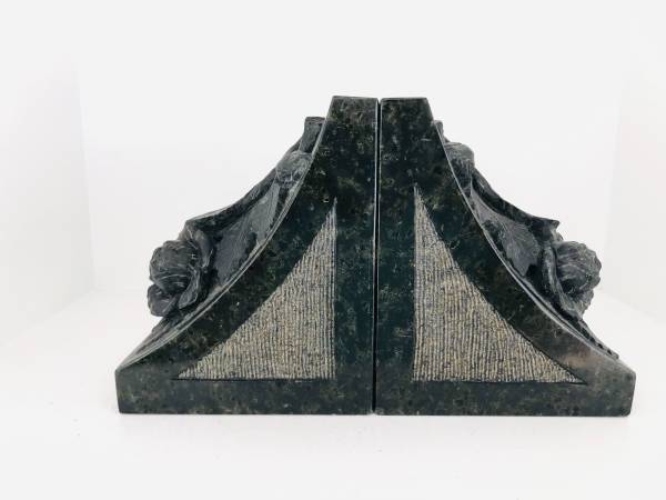 Wonderful Set of very heavy hand carved bookends. These can be positioned several ways. There is a small chip on the top of one flower which is quite hard to notice unless your are looking for this; otherwise, in really fantastic condition. See picture for measurements.