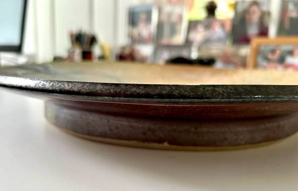 Unbelievable piece of signed studio pottery (this is a high fire ash glazed piece which is how the artist achieved such intense contrast). In excellent like-new condition. Just stunning. Collectible piece.