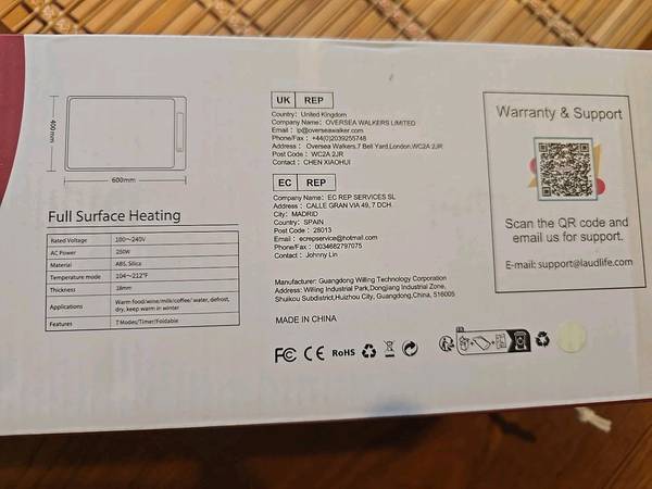 250W power ensures your food stays warm with minimal energy use.