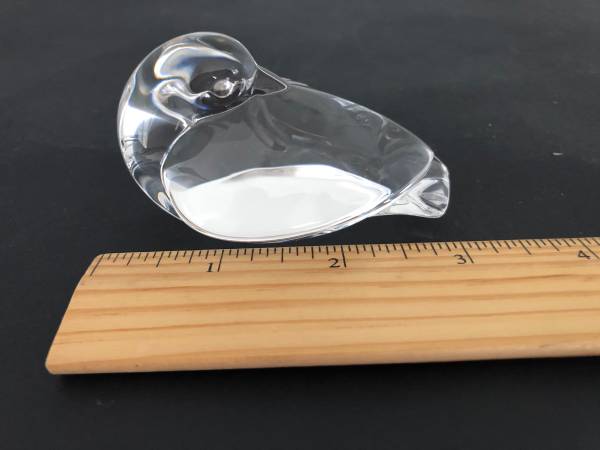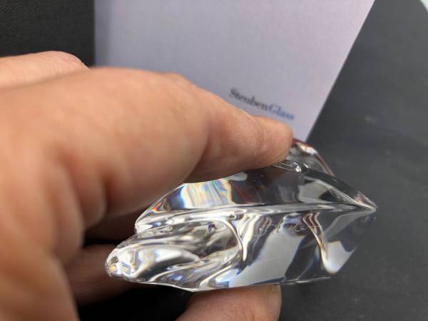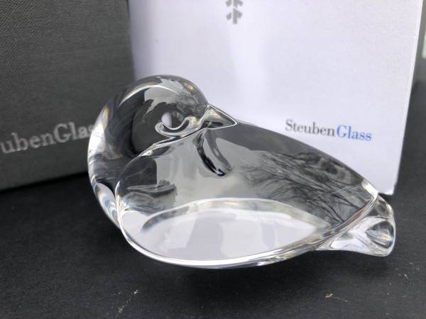 Beautiful Steuben Crystal Dove with Original Box (no interior bag). These are referred to has "hand coolers". This is signed Steuben (see picture). The Steuben figurines retails for $250/each, and if you can find them, Replacements.com will sell these for $199 with their box. In PERFECT/LIKE NEW - always in box condition. Box includes interior card for Steuben Crystal. Really STUNNING!!