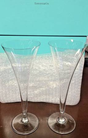 Each glass is on perfect condition and marked on the base Toast away with these beautiful champagne flutes Sorry, no box.
