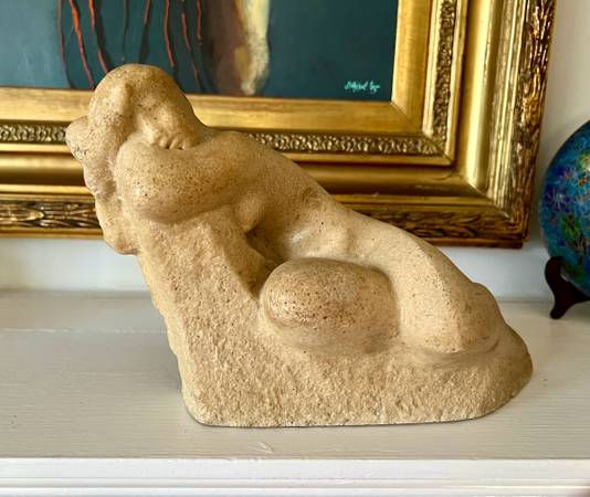 Vintage VINCENT GLINSKY (1895-1975) Nude Woman "the Dreamer" Resin Stone Composite sculpture. This collectible statue is in Excellent Pre-Owned Condition. Heavyweight piece Measures 11" x 4" x 7" in height and has Felt on the bottom. Marked on the back and on the side.
