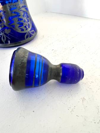 Such a unique cordial decanter with lovely details. I gave this a wash with dawn soap and it brighten up the silver details a bit and I suspect a little more cleaning attention will really make the silver details pop.
