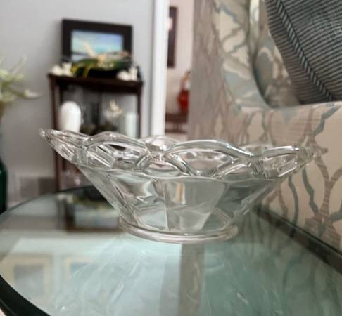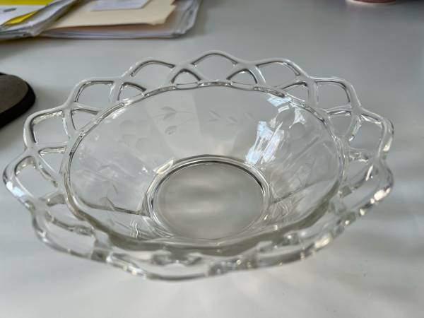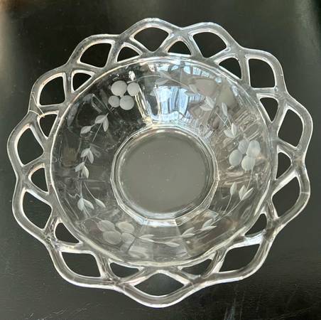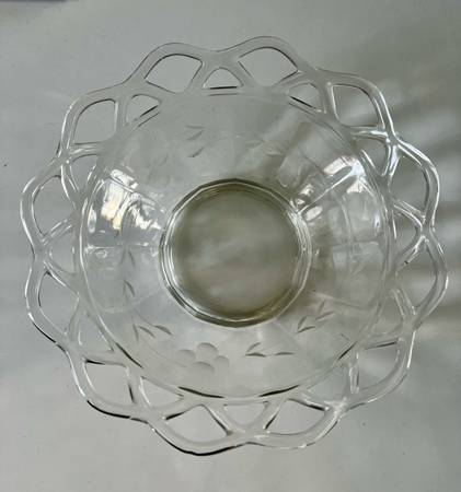 Vintage Clear Etched and Lace Trim Serving Bowl 8” - household items...