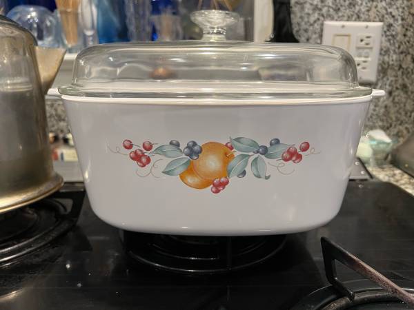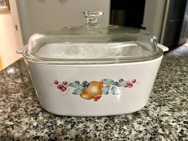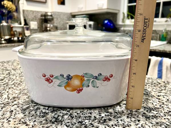 Hard to find large 5-quart or 5-liter corningware casserole dish - in pristine, almost new, condition. This can go into the freezer, the oven and the dishwasher. These amazing casserole dishes are now vintage collectibles as they are no longer made in the USA