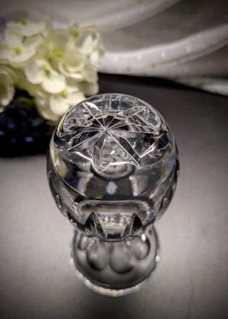 Delightful vintage Waterford crystal violet vase, a lovely touch for your bedside table, dresser or desk. Height 4 inches, diameter 2 inches. Excellent condition. Waterford mark present. Pick up in...