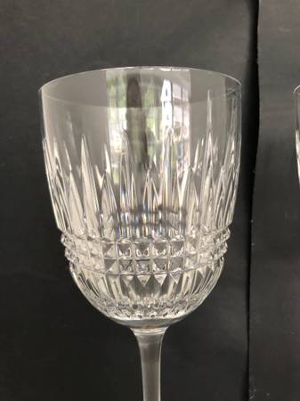 Stunning glasses for wine or water and in perfect, like-new condition. The Lismore Diamond pattern is a strikingly modern reinvention of the Waterford classic: characterized by intricate diamond cuts rendered in radiant fine design.