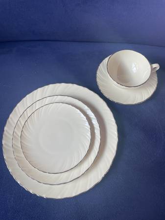 Lenox Bone China Weatherly Pattern Elegant swirl edge with platinum trim Four, 5-piece place settings, 20 pcs total $83 Eight, 5 piece place settings, 40 pcs total $160 Twelve, 5-piece place...