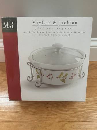 Comes with vented lid and serving rack. Design is a Winterberry pattern with holly and berries. Microwave, oven, and dishwasher safe. Item is first come, first serve. Cash or Venmo. Local pickup...