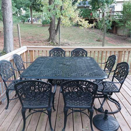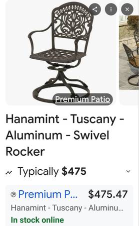 .Orginal Hanamint Tuscany LUXURY Collection Patio Outdoor Dining Set. LARGE Square Table 60"W×60"D×29"H, with 8 Hanamint Tuscany Luxury Collection Patio Dining Armchairs ( 2 Swivel Rocking Chairs +...