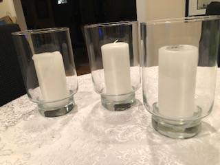 Soto Clear Glass Hurricane Candle Holders by Crate and Barrel - Candles Included.