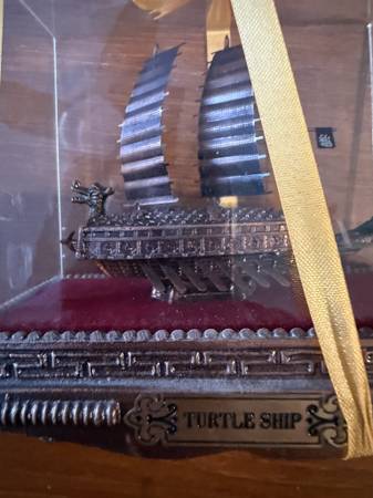 The Korean Turtle Ship is the first ironclad ship. The Bronze Korean Turtle Ship Replica Model is a meticulously crafted collectible that showcases the intricate design of a traditional Korean turtle ship. This sail-powered model is a perfect addition to any boat or ship enthusiast's collection, capturing the essence of ancient Korean naval architecture. The replica comes with a protective case, making it ideal for display and preservation. Its detailed craftsmanship and historical significance make it a unique and fascinating piece for collectors.