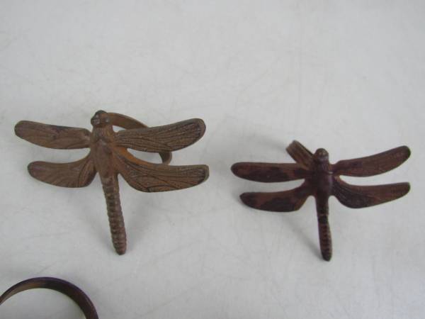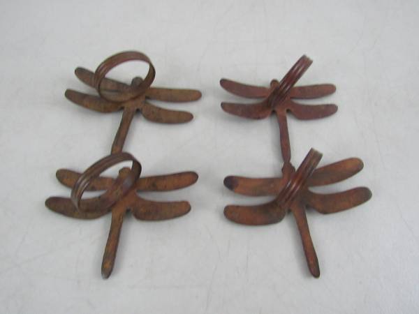 The Dragonfly napkin holders are 2 3/4" length X 2 3/4" wingspan. The ring for the napkin is 1 1/2" inside diameter. Very good condition, and not sure if ever used. No broken or missing parts. See...
