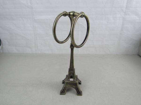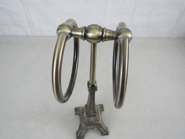 The towel holder is 12 1/4" tall. The towel rings are 4 1/2" across, and they are brass plated steel. The tower itself is brass plated die cast aluminum. Good condition with some minor age and usage...