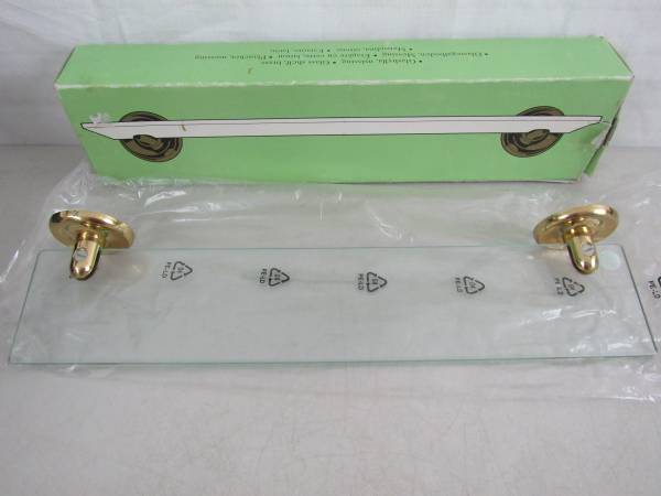 This is a 19 3/4" long, and 3 3/4" deep.The brackets are adjustable, and the rose or circular part of the bracket that would be against the mounting surface is 2 11/16"..Box has some storage wear. Box was opened for contents inspection and listing photo's.