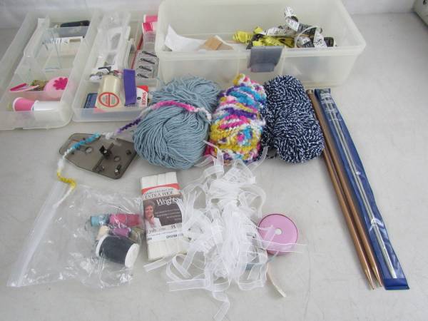 The sewing and knitting supplies are in good condition with a few new unused items. See photo's