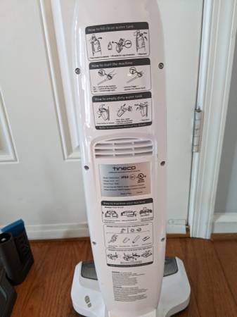 Tineco cordless vacuum and floor washer, with cleaning tools, charging cord, and storage stand