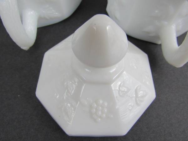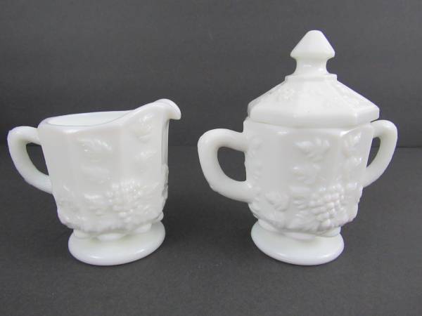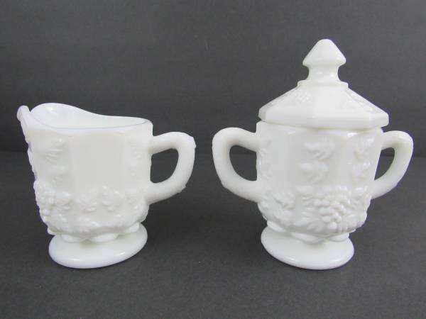 Sugar bowl 5” tall and 5” wide from handle to handle. Creamer is 3 1/4" tall X 4" width from spout to handle. Good condition, and shows no signs of usage wear. No chips, cracks, broken or missing...