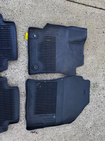 All weather factory Toyota Corolla floor mats from a 2022 model in excellent condition. Set includes front row, back row and trunk liner. Local pickup only.