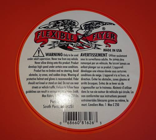 Two Flexible Flyer 26-inch plastic snow saucers, good condition, $15 each or $25 for both. Pickup in Potowmack Crossing condo complex, 1636 West Abingdon Drive, Alexandria VA 22314.