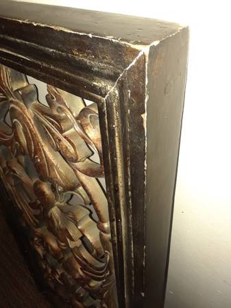 --Wall hanging #2 is solid wood, 30.5 inches x 15 inches, good condition overall but finish is worn/scratched in several places (please see closeup photos), $10
