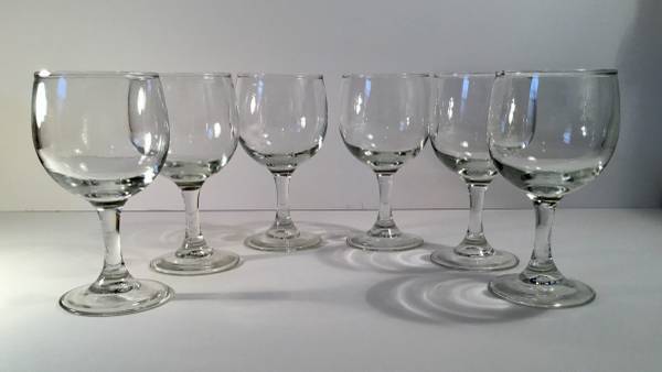 Total Height of each glass around 5 ¾”, short stem being a little over 2” of the total height.