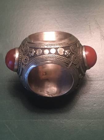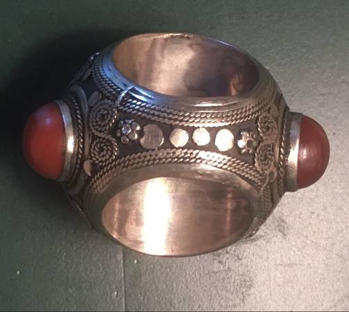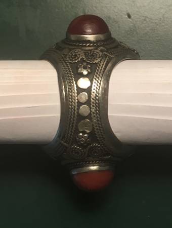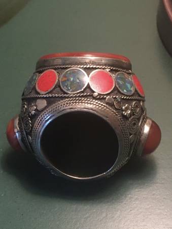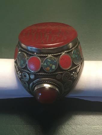 Extra large, heavy, vintage solid silver thumb ring. Protective Prayer Inscription on Stone on face of ring. All stones in perfect condition; no chips.