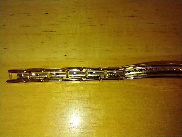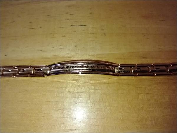 I have a Fashion Gold Diamond Cut ID Bracelet for sale. It is made of 24 karat gold layered over a bronze center. The bracelet measures 7 inches long by 3/8 inch wide. I am asking $20.00 cash.
