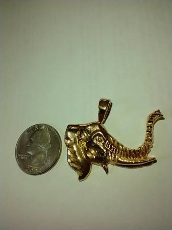 I have a Fashion Gold Elephant Pendant for sale. It is made of 24 karat gold layered over a bronze center. I am asking $22.00 cash.
