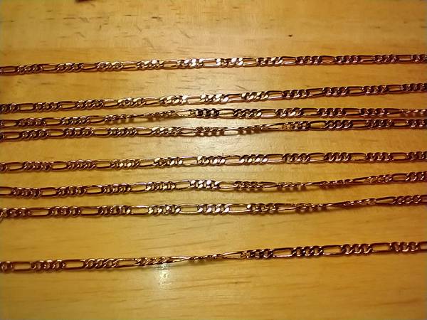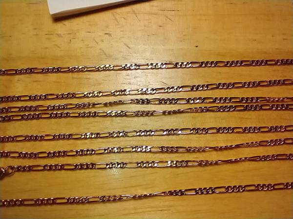 I have several Fashion Gold Figaro Necklaces for sale. They are made of 24 karat gold layered over a bronze center. I have the following lengths available: