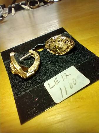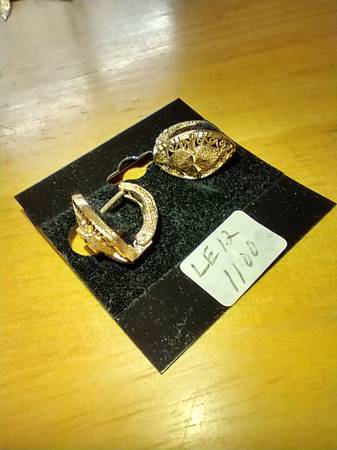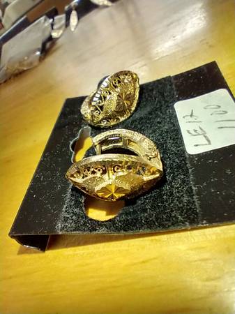 I have two pairs of Fashion Gold Filigree Diamond Cut Earrings for sale. They are made of 24 karat gold layered over a bronze center. I am asking $11.00 cash for each pair. ( LE12 )