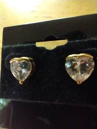 I have two pairs of Fashion Gold Earrings with large heart shaped Cubic Zirconia stones. They are made of 24 karat gold layered over a bronze center. I am asking $20.00 cash for each pair of...