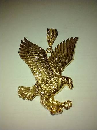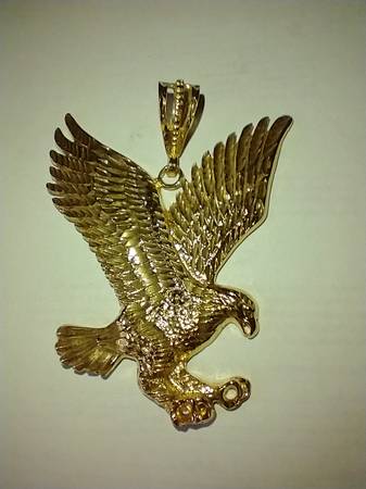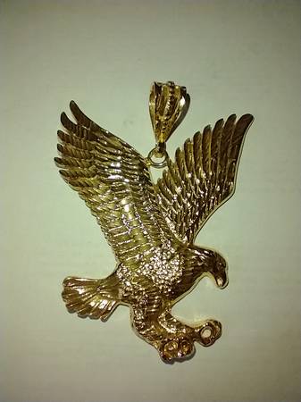 I have a Fashion Gold Jumbo Flying Eagle Pendant for sale. It is made of 24 karat gold layered over a bronze center. The pendant measures 3 inches wide by 3 1/2 inches from the oversized bezel to...