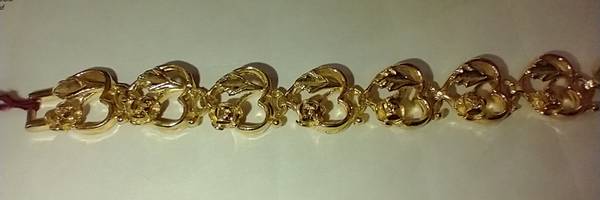 I have a Fashion Gold Ladies Bracelet for sale. It is made of 24 karat gold layered over a bronze center. It measures 7 inches long by 1/2 inch wide. I am asking $34.00 cash. ( LB40 )