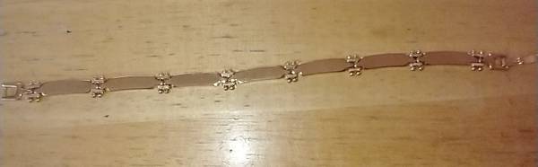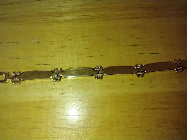 I have a Fashion Gold Ladies Bracelet for sale. It is made of 24 karat gold layered over a bronze center. It measures 7 inches long by 1/4 inch wide. I am asking $20.00 cash.