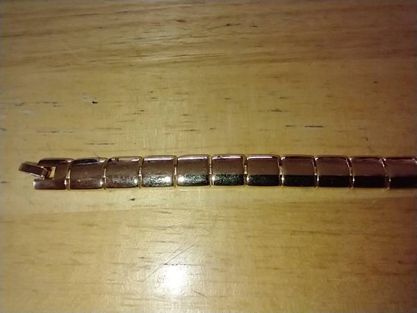 I have a Fashion Gold Ladies Bracelet for sale. It is made of 24 karat gold layered over a bronze center. The bracelet measures 6 1/2 inches long by 3/8 inch wide. I am asking $25.00 cash.