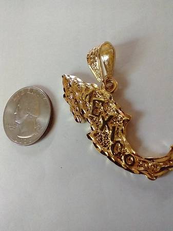 I have a Fashion Gold Mexico Pendant for sale. It is made of 24 karat gold layered over a bronze center. I am asking $22.00 cash.