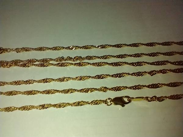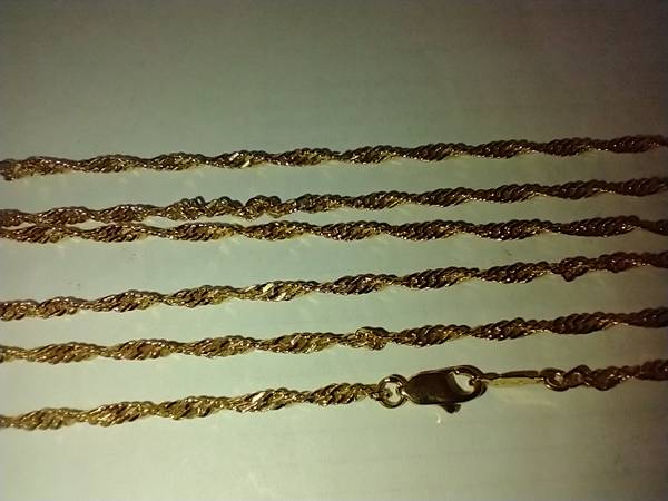 I have several Fashion Gold Twist Necklaces for sale. They are made of 24 karat gold layered over a bronze center. They have a lobster claw clasp. I have the following lengths available: 16 inch....