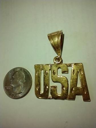 I have a Fashion Gold U.S.A. pendant for sale. It is made of 24 karat gold layered over a bronze center. I am asking $22.00 cash.