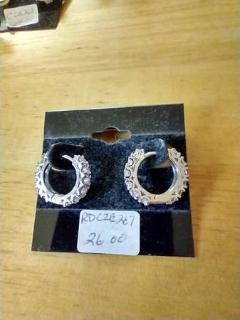 I have a pair of Fashion Rhodium and Cubic Zirconia Earrings for sale. They are made of Rhodium layered over a bronze center. The earrings are decorated with a row of clear cubic zirconia stones around the edge of each earring. I am asking $26.00 cash. (RDCZE267 )