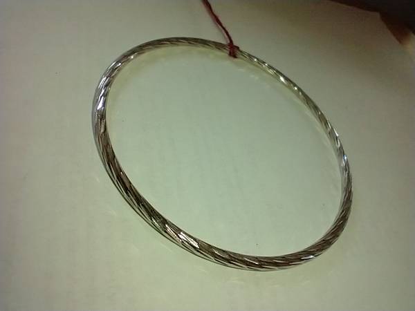 I have a Fashion Rhodium Twisted Bangle Bracelet for sale. It is made of Rhodium layered over a bronze center. The bracelet measures 3 inches in diameter. I am asking $16.00 cash.